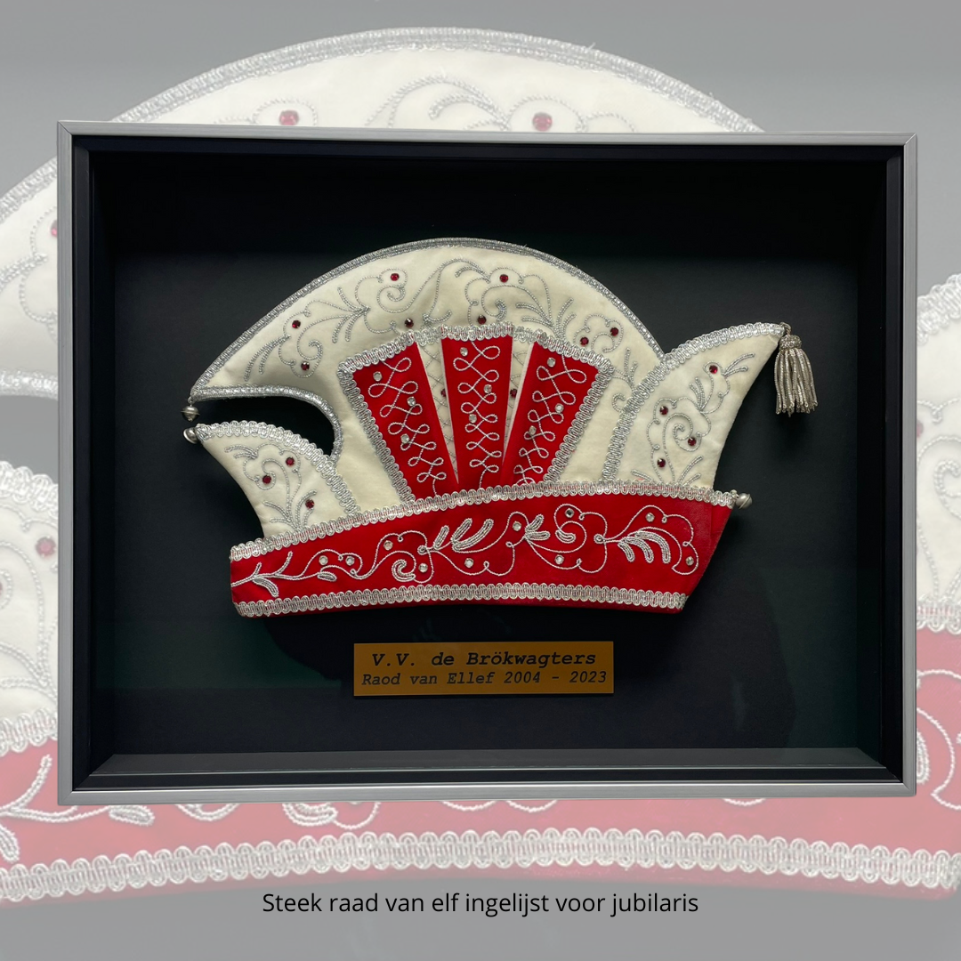 Deze inlijstvoorbeelden laten u zien, dat op het gebied van inlijsten ontzettend veel kan. Er zijn zoveel mogelijkheden om dierbare of kostbare objecten in te lijsten. Het belangrijkste is dat het inlijsten met zorg en de juiste materialen gebeurt. U kunt hiervoor terecht in onze lijstenmakerij. Wij maken elke lijst op maat in eigen werkplaats.
